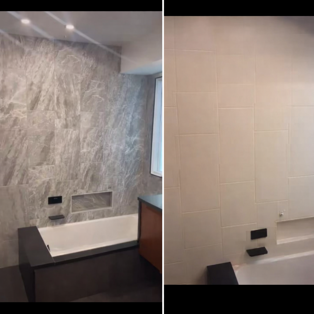 Don’t rip out your tile. Whether it’s an outdated color, chipped surfaces, or moldy grout lines, we can make your bathroom or kitchen walls look brand new in a fraction of the time.